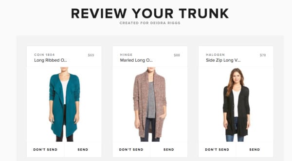 I think that’s a significant point, Colleen. I’ve heard other women say the same thing about Stitch Fix. Let me know if you decide to give Trunk Club for Women a try.
